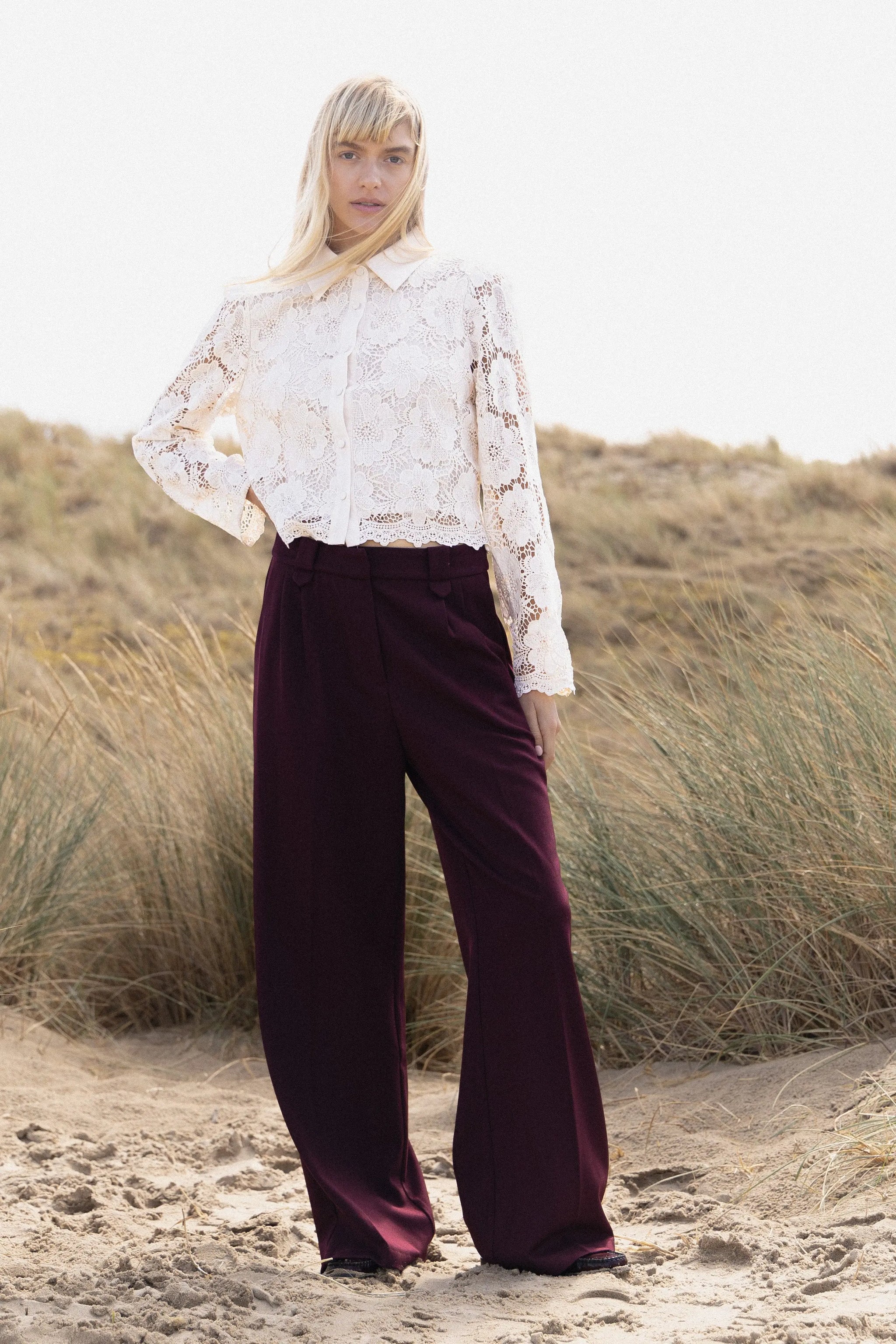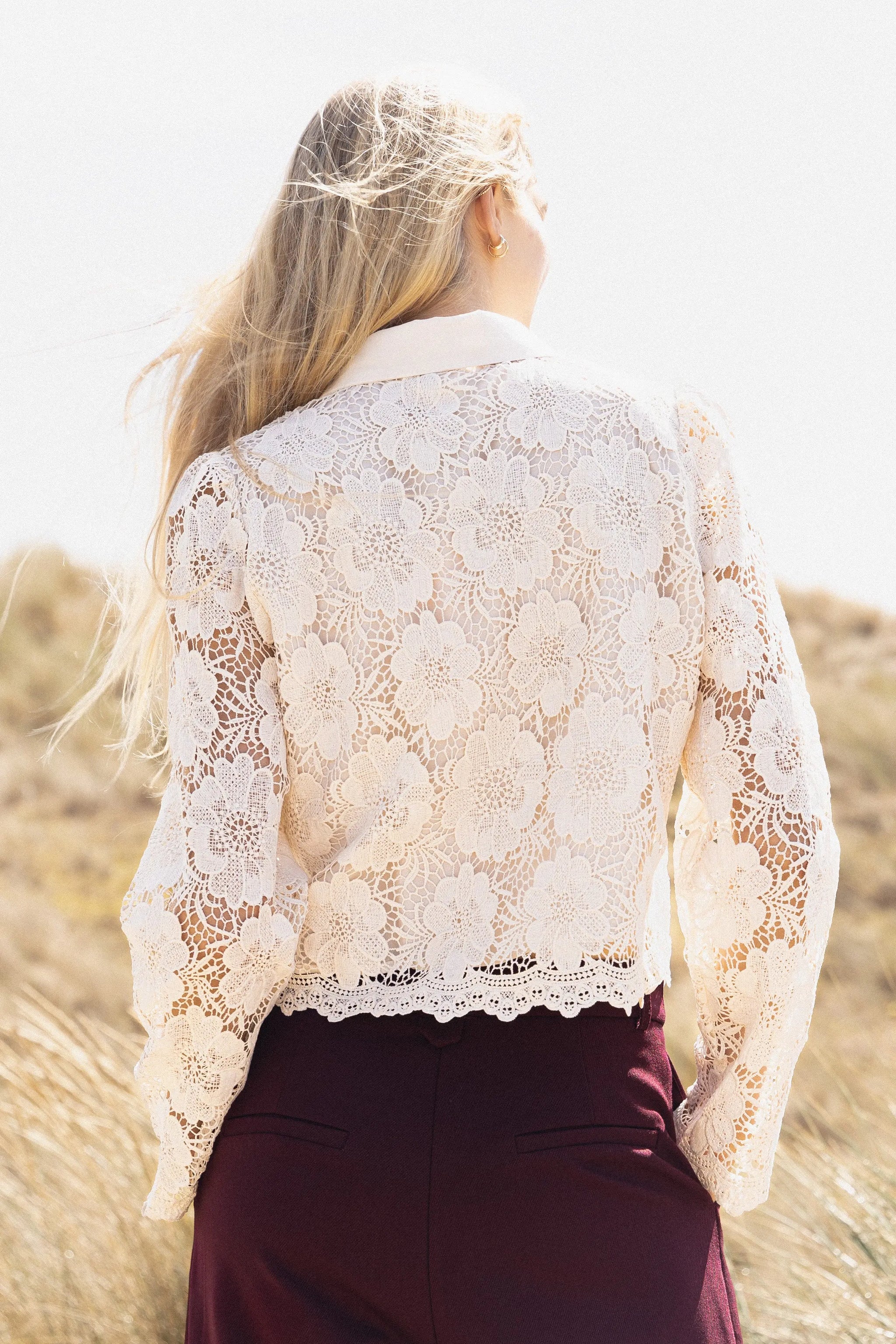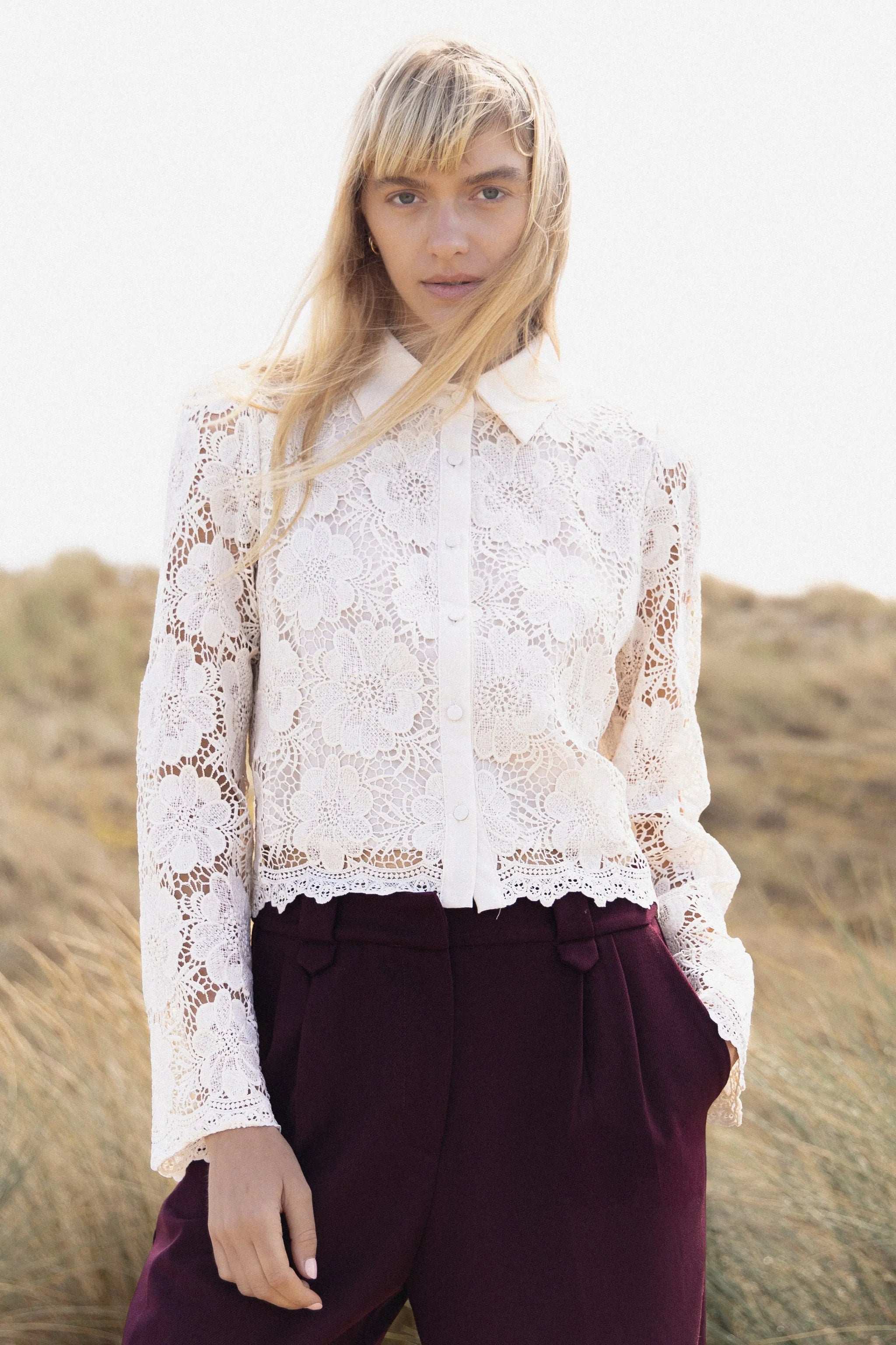 Un chemisier en dentelle au style romantique, parfait pour sophistiquer vos looks. Ses détails délicats et sa coupe élégante en font une pièce forte de la collection.