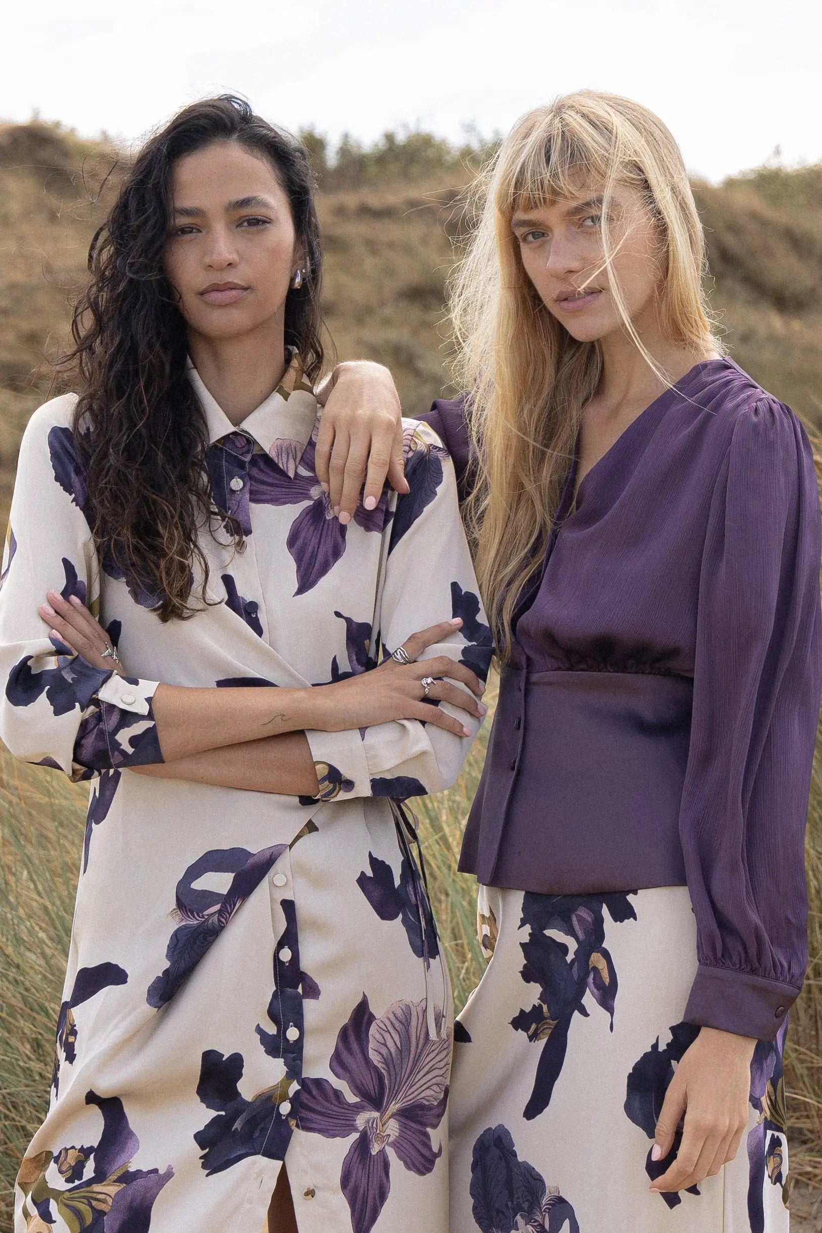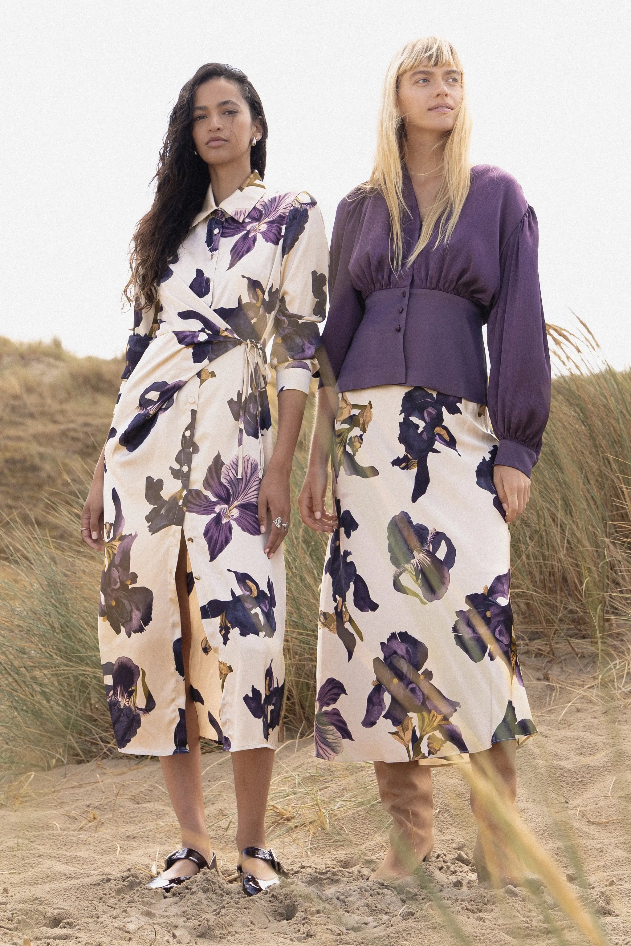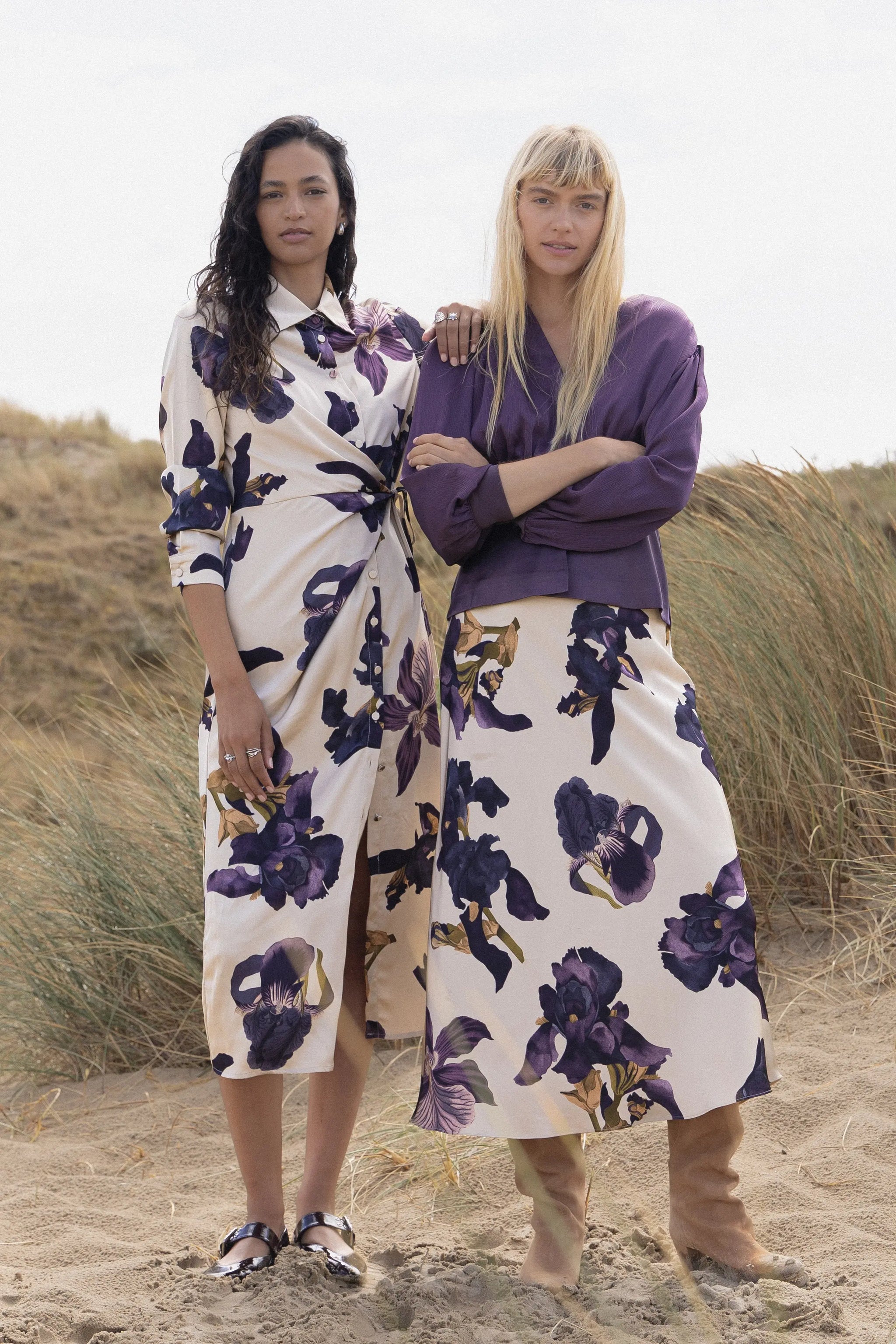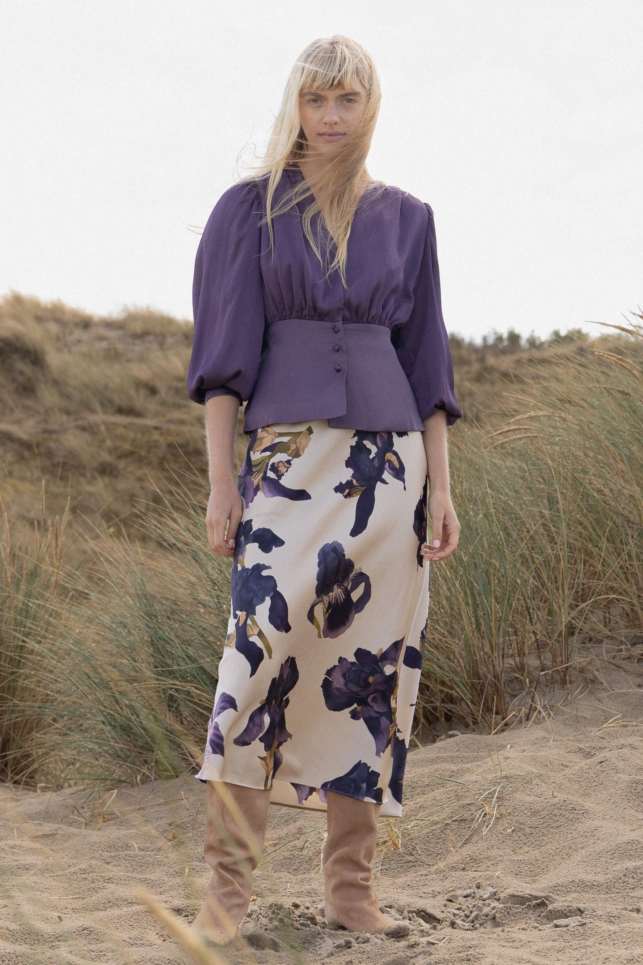 Une jupe midi fluide au tombé élégant, habillée d’un imprimé floral subtil. À associer avec la blouse LÉONIE pour un ensemble raffiné ou à mixer avec un pull oversize pour un look plus casual.