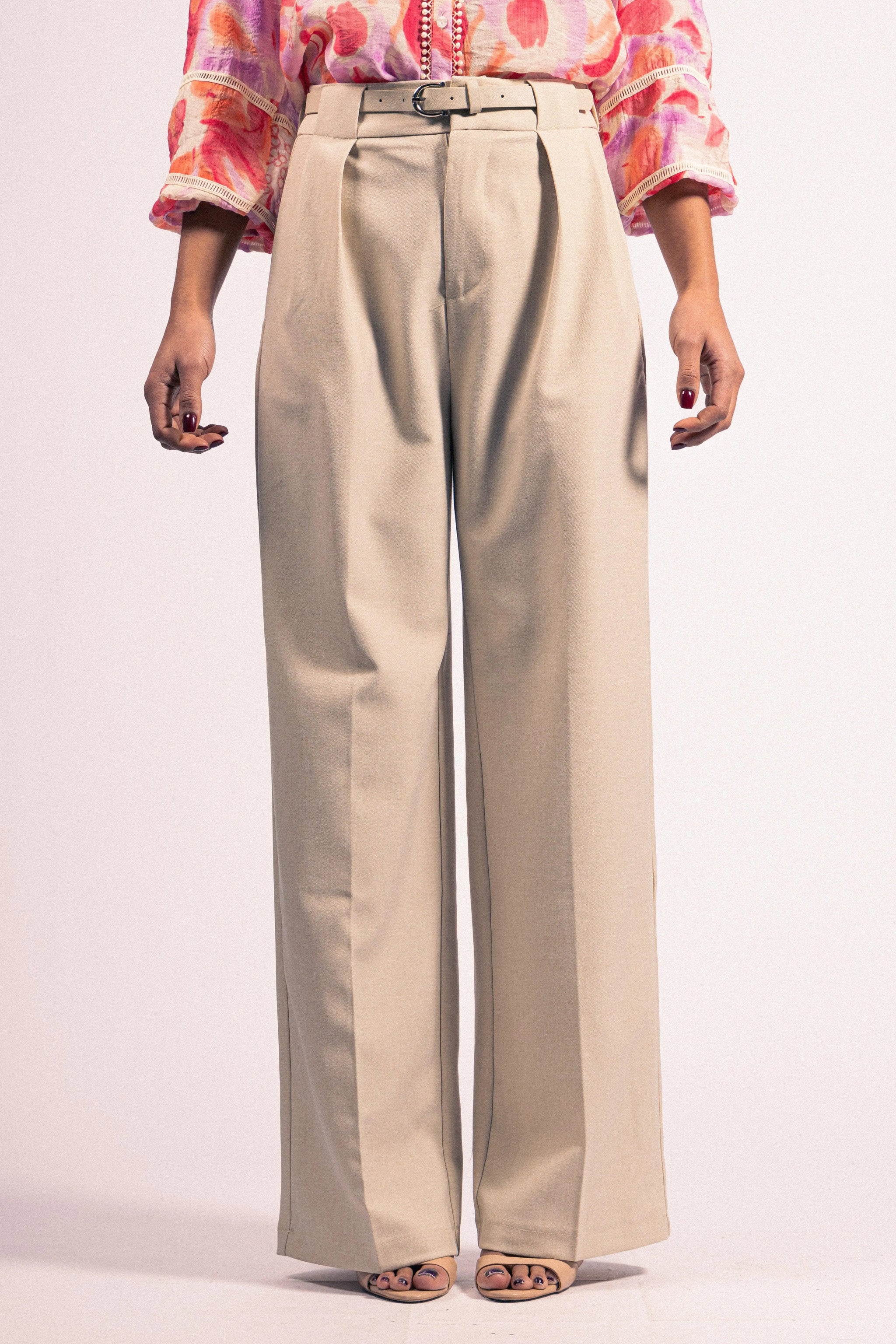 Ce pantalon polyvalent, disponible en beige ou vert, offre une coupe moderne et confortable Sa matière légèrement stretch assure un ajustement parfait et un confort optimal tout au long de la journée