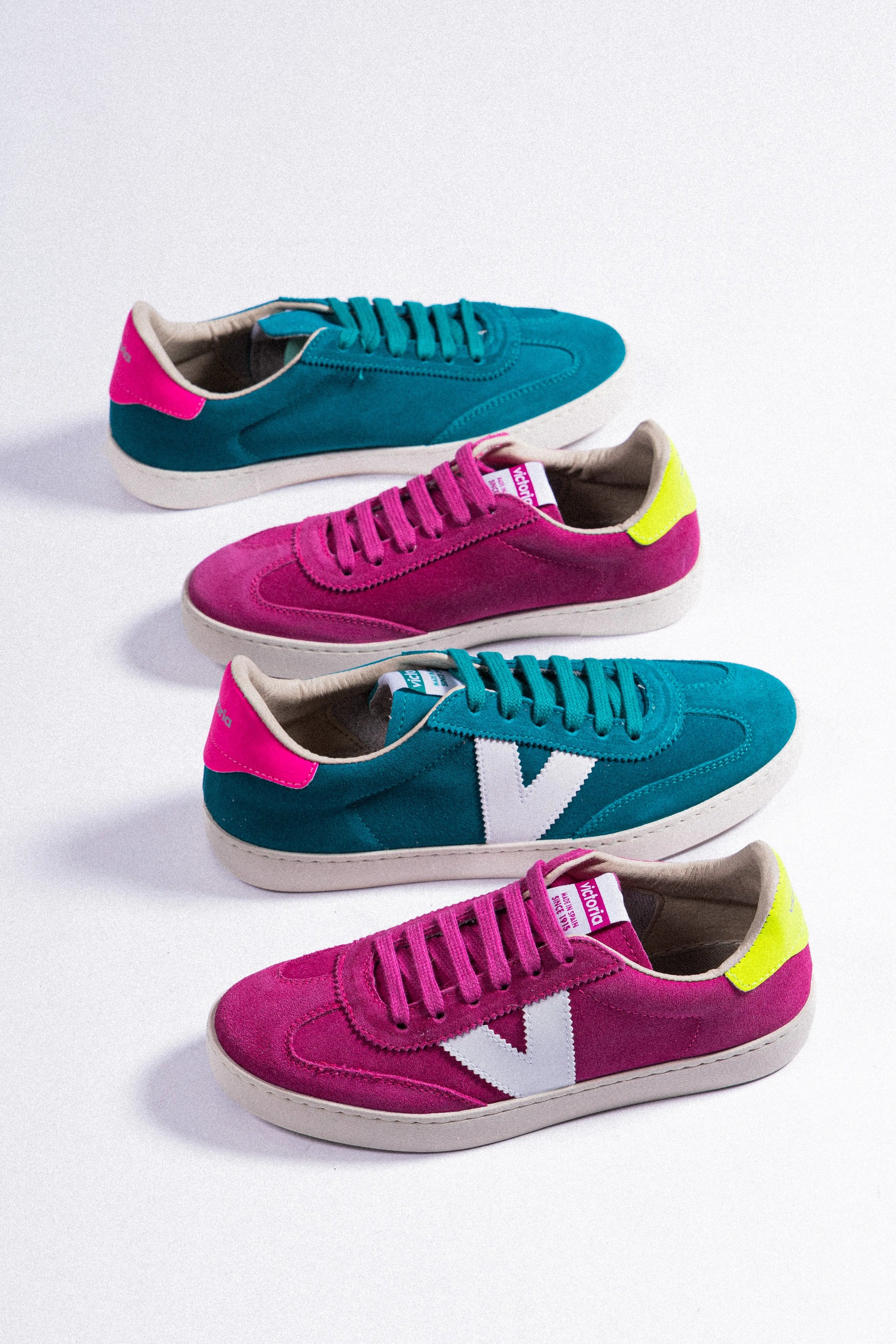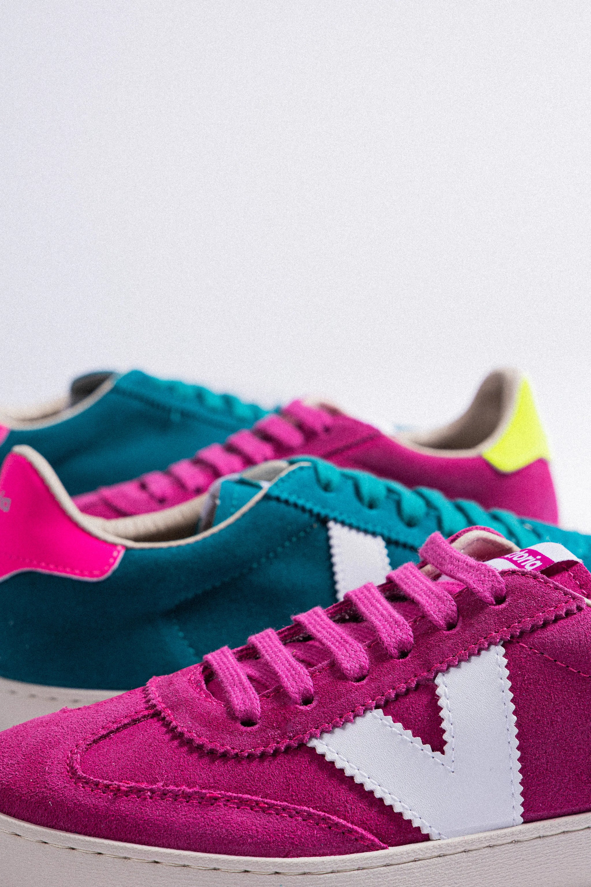 The VICTORIA fuchsia women's sneakers are the perfect blend of retro and modern style. Crafted from suede, they offer exceptional comfort while adding a vibrant, colorful touch to your look. Their unique design and contrasting finishes make them a bold and on-trend piece.