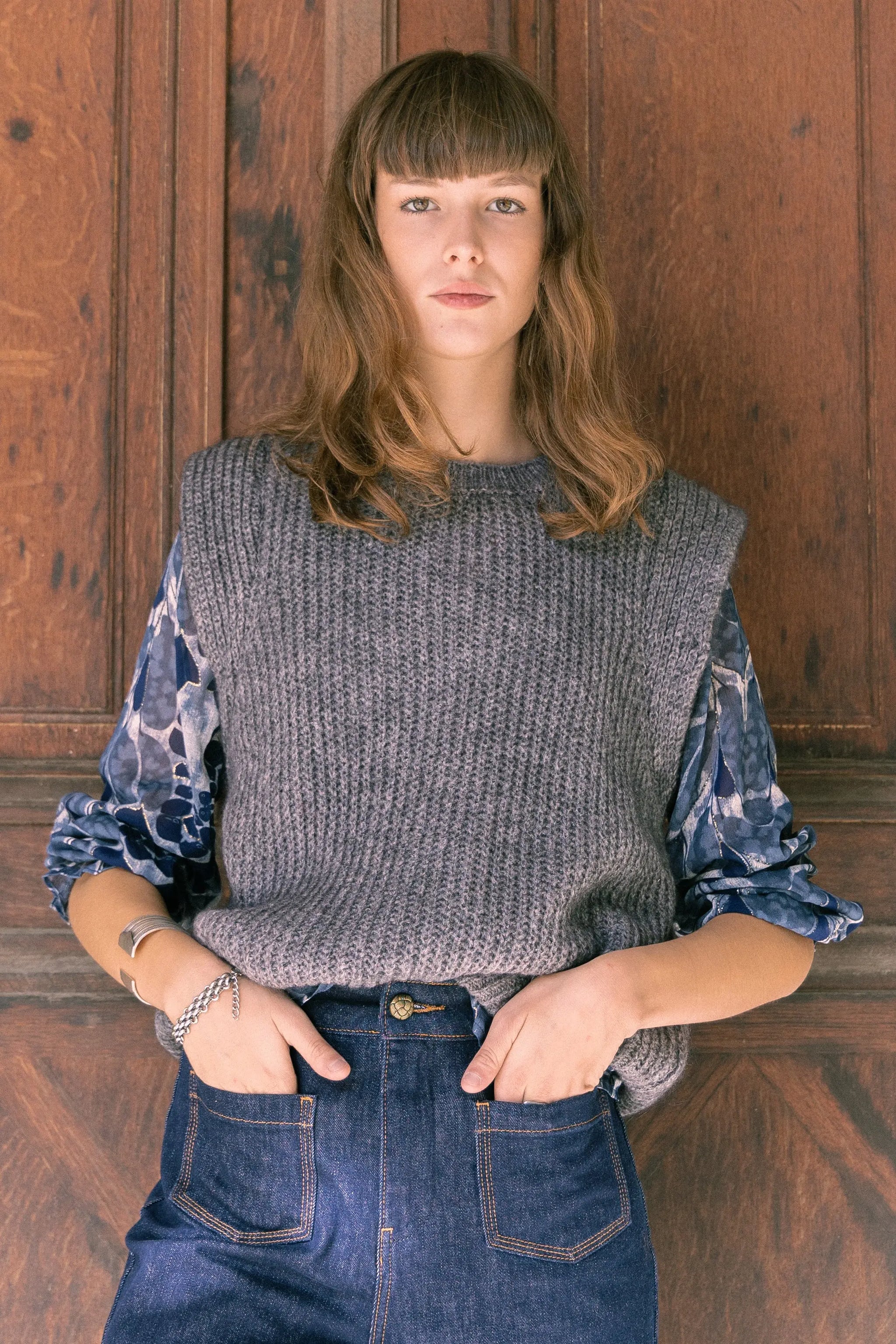 Flowing top with a V-neck and long sleeves. Straight cut with slight gathers at the cuffs. Lightweight fabric with a plant print, ideal for mid-season. Wear tucked into jeans or high-waisted pants.