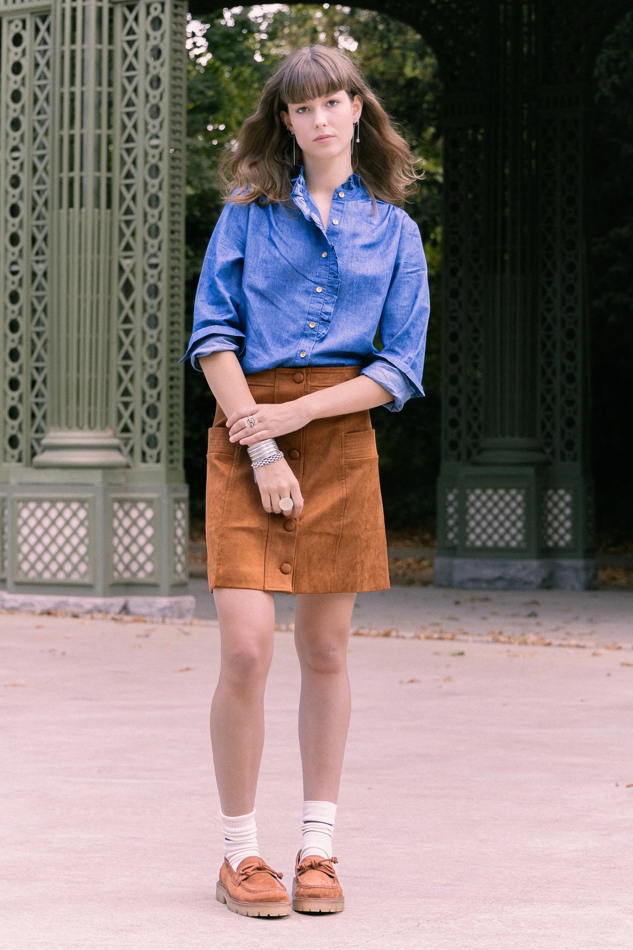 Lightweight denim shirt with a straight fit and classic collar. Button closure at the front. Patch chest pocket. Made from 100% cotton for natural, everyday comfort. Easy-to-match denim blue shade.