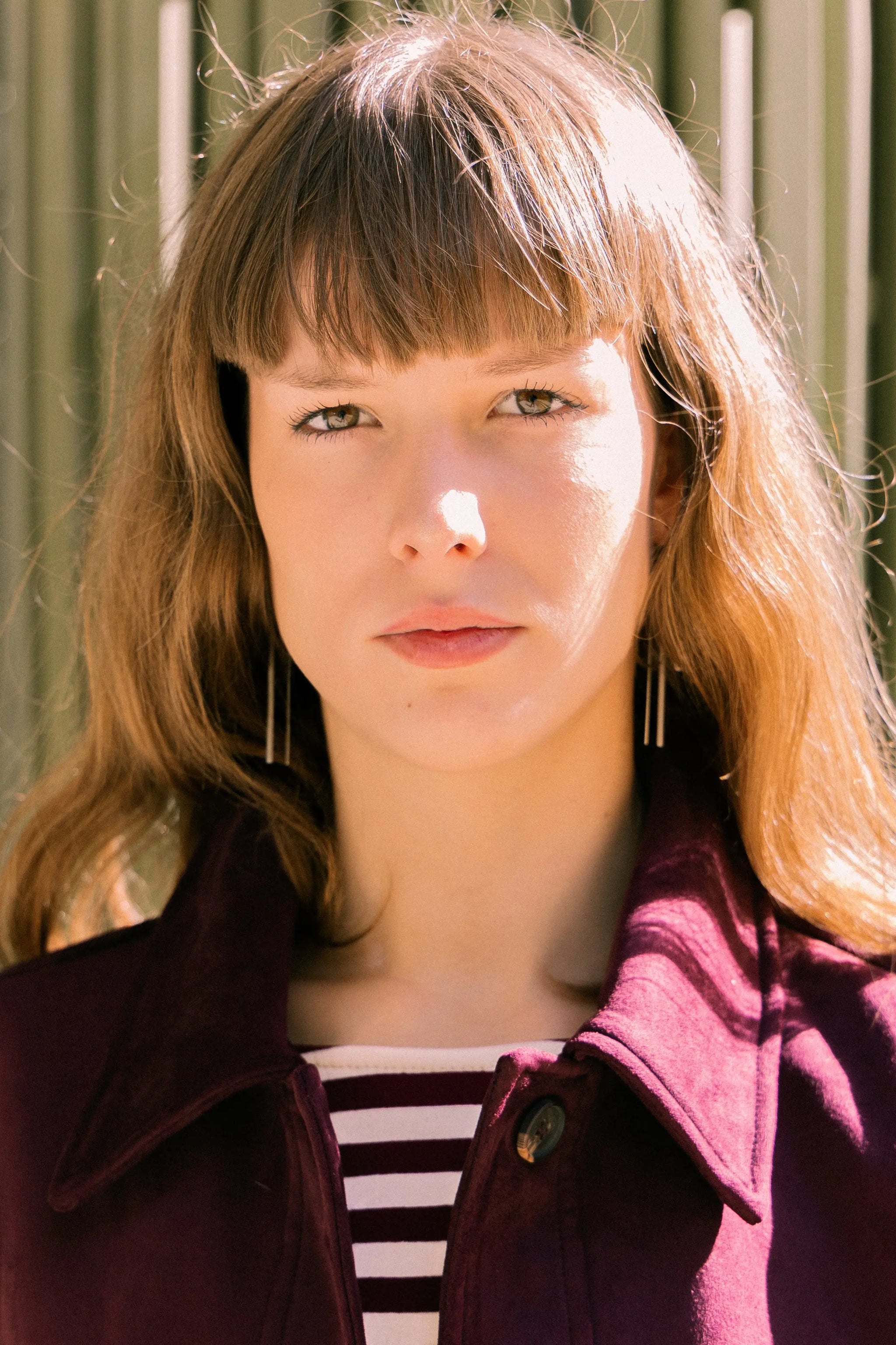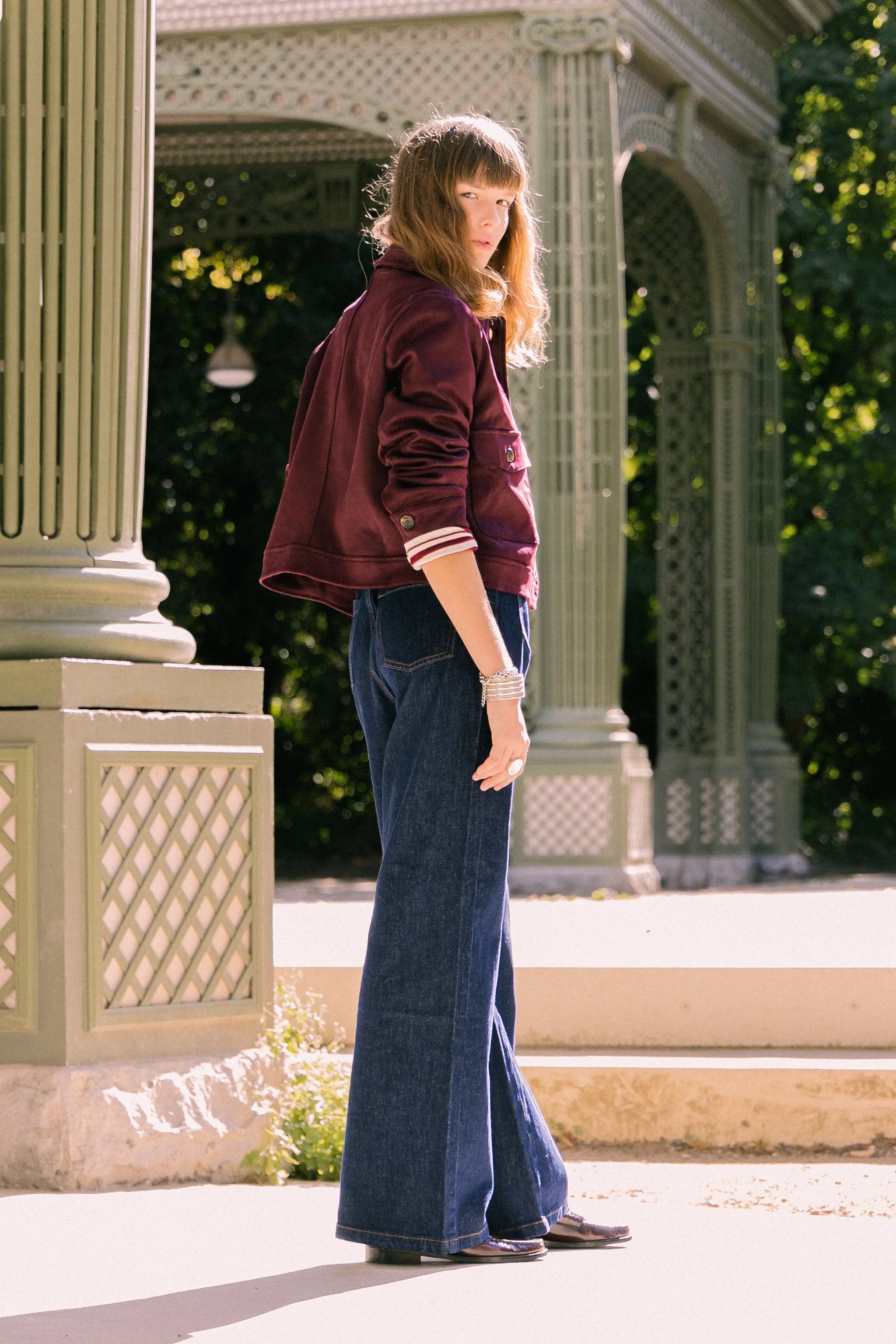 Short jacket with a shirt collar and a straight cut. Tone-on-tone button closure. Two front patch pockets with flaps. Slightly stretchy fabric for added comfort. Available in burgundy, camel, and taupe.