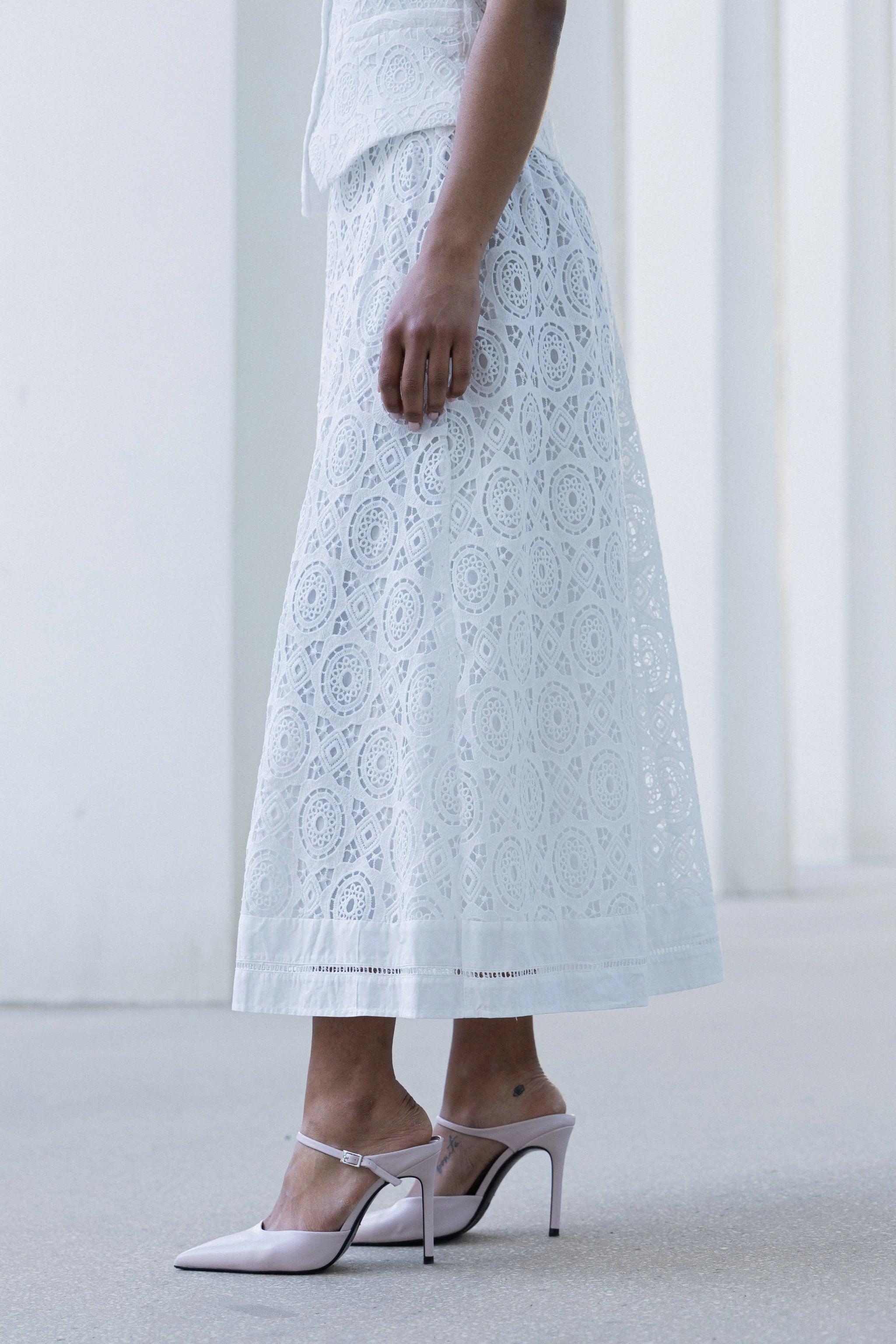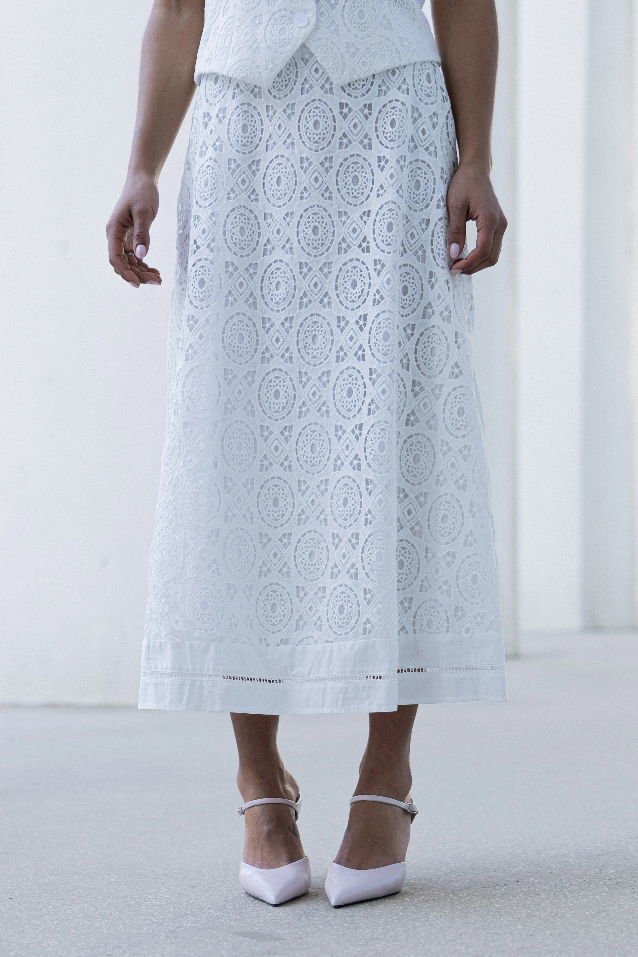 Openwork lace skirt matching the cardigan, with a flowing cut and a light lining for optimal comfort